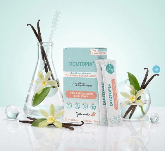 Lancée au mois de février 2026, Doutopia Stick® est un complément alimentaire qui vient compléter les effets de la crème du même nom. Une routine complète, In&Out, qui vise à « soutenir la barrière cutanée, renforcer la tolérance immunitaire réduire durablement les poussées de plaques sèches dès le plus jeune âge ». Et cela grâce à l’association de deux probiotiques (Lacticaseibacillus rhamnosus et Lactobacillus helveticus), de vitamines B2 et D3 ainsi que l’ingrédient Lacidofil® (combinaison de L. rhamnosus Rosell®11 et L. helveticus Rosell®-52 de Lallemand Health Solutions ciblant la santé digestive) documenté par 26 études cliniques, dont 13 chez l’enfant, une utilisation depuis 1995, avec un excellent profil de tolérance.